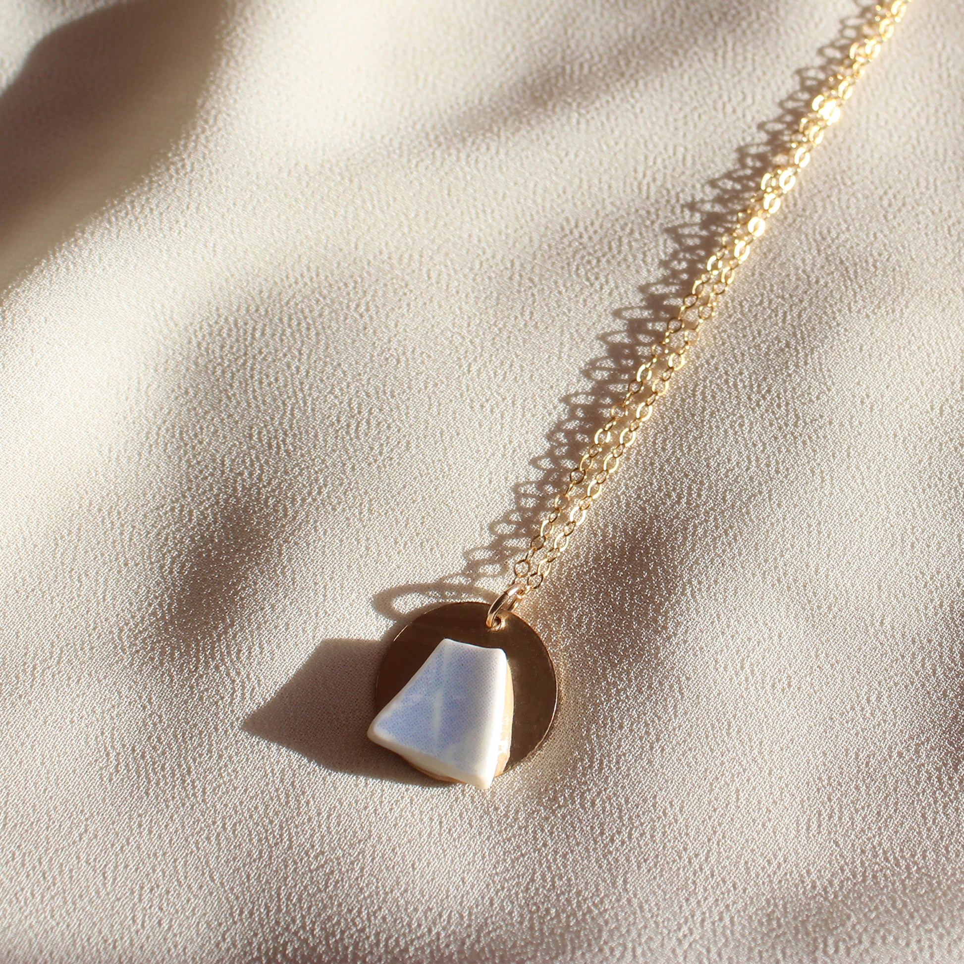 Ceramic sky piece on 14K gold-filled disc